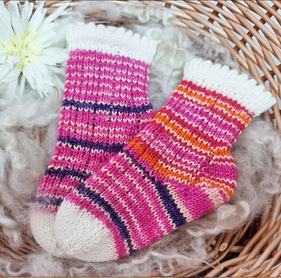 Handgestrickte Kindersocken Crazy Püppi Gr. 24/25