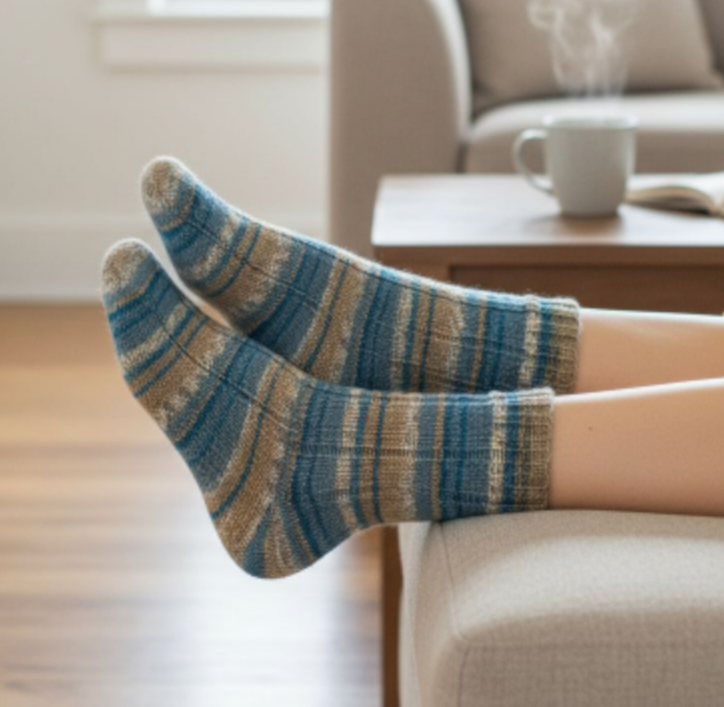 Erleben Sie höchsten Tragekomfort mit den handgestrickten Socken „Strandgeflüster“ in Größe 42/43. Gefertigt aus hochwertiger Regia Sockenwolle verbinden sie natürliche Wärme mit atmungsaktiver Elastizität – ideal für den Alltag oder entspannte Stunden am Strand. Die fein verarbeitete Stricktechnik sorgt für eine perfekte Passform und langlebige Qualität. Diese Socken sind nicht nur funktional, sondern setzen mit ihrem maritimen Design auch modische Akzente. Genießen Sie die Kombination aus Komfort und Stil, die Ihre Füße geschmeidig hält und zuverlässig schützt. Ein Produkt für Kenner, die Wert auf handwerkliche Präzision legen.