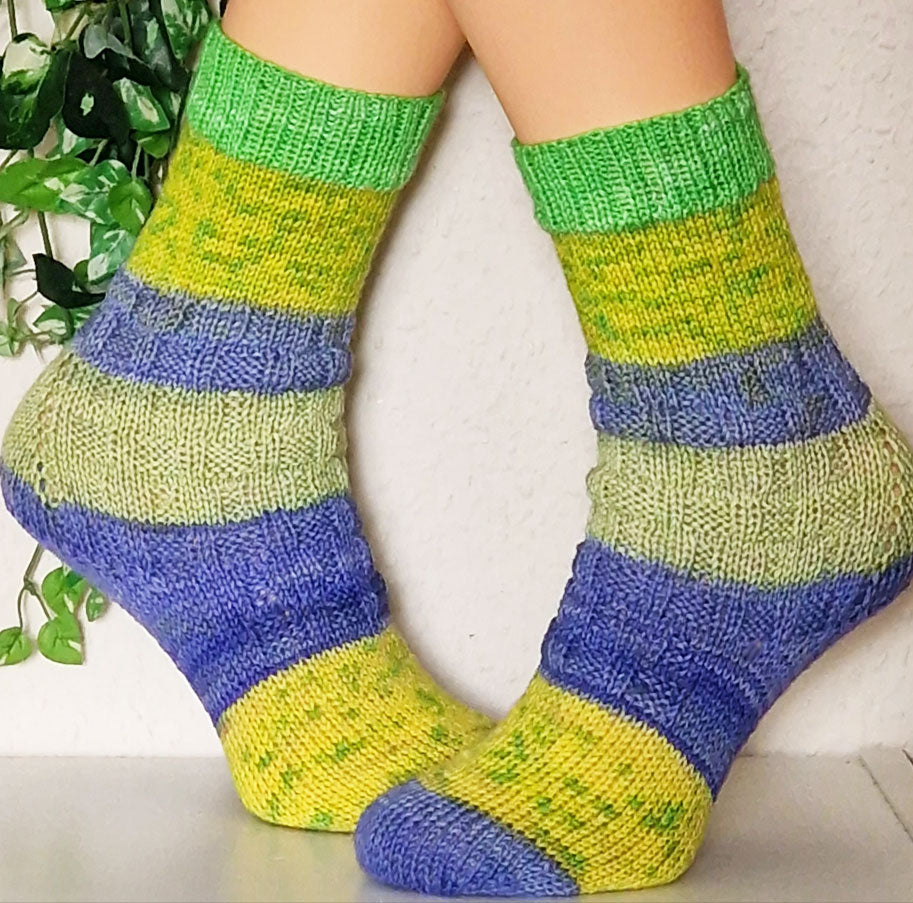 Unsere handgestrickten Socken sind in liebevoller Handarbeit entstanden. Diese Socken wurden mit von uns handgefärbter Merino Sockenwolle gestrickt. Sie erhalten auf jedenfall ein Unikat.