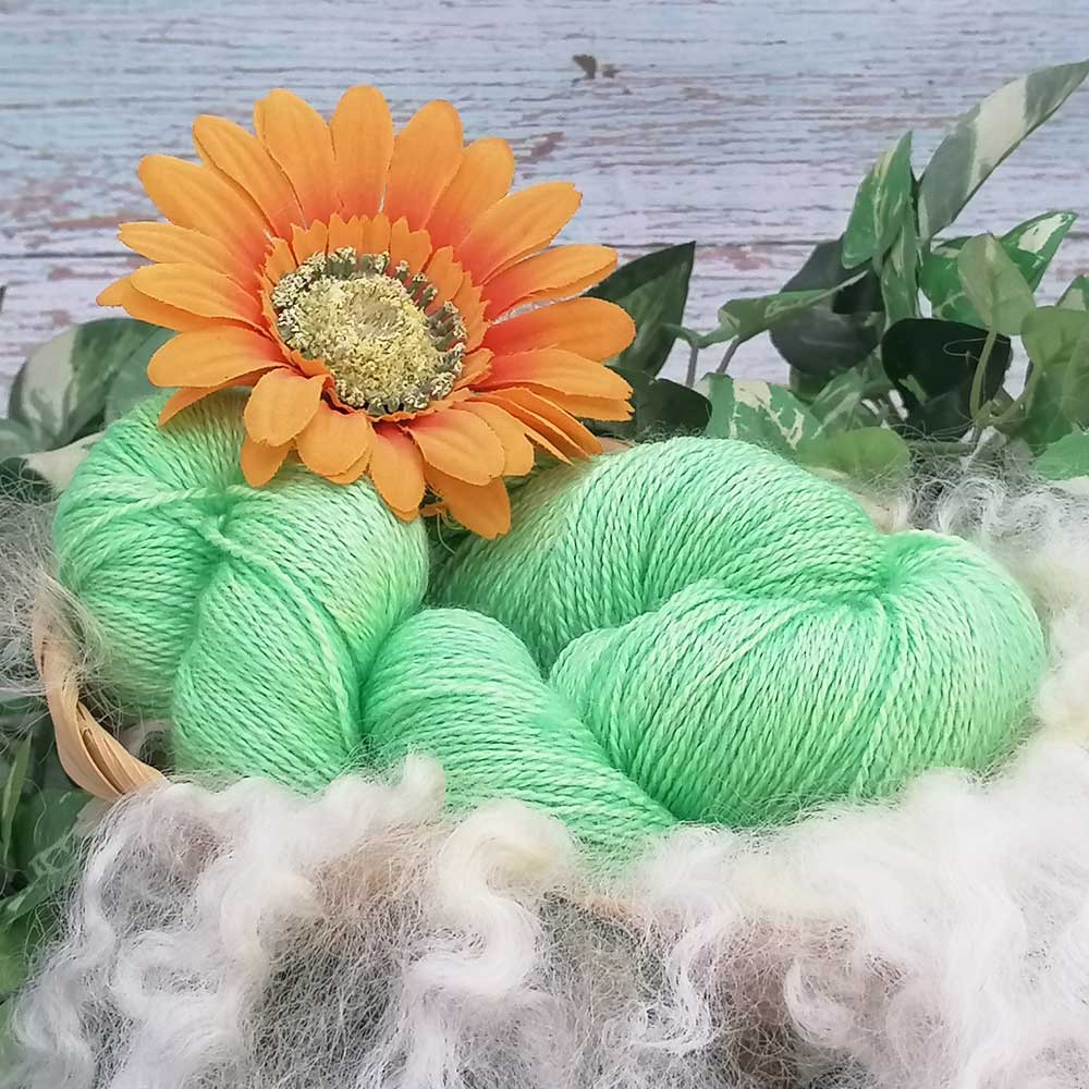 Zusammensetzung: 55 % Schurwolle (Bluefaced Leicester, superwash), 45 % Seide